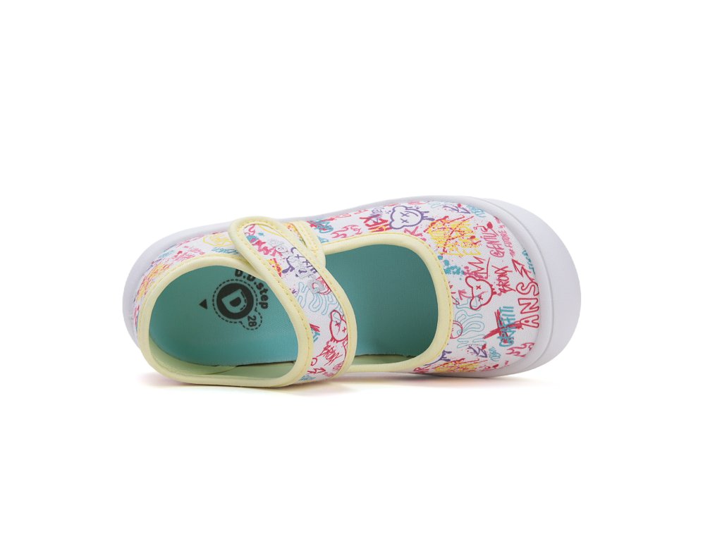 Detské plátené topánky od D.D.Step prednostne určené do interiéru. Mäkká-flexibilná podrážka pre pohodlnú chôdzu a praktické zapínanie na suchý zips. Zvršok a aj stielka je z prírodných textilných materiálov vďaka čomu sú vzdušné a odvádzajú pot od detských nožičiek. Obuv D.D.Step je odľahčená, ohybná a pri prstoch širšia. Plátenky sú pratelné na 30C.