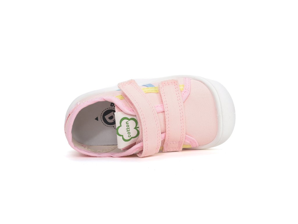 Detské plátené topánky od D.D.Step prednostne určené do interiéru. Mäkká-flexibilná podrážka pre pohodlnú chôdzu a praktické zapínanie na suchý zips. Zvršok a aj stielka je z prírodných textilných materiálov vďaka čomu sú vzdušné a odvádzajú pot od detských nožičiek. Obuv D.D.Step je odľahčená, ohybná a pri prstoch širšia. Plátenky sú pratelné na 30C.
