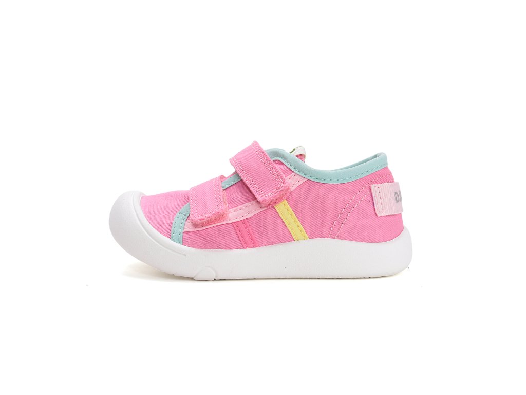 Detské plátené topánky od D.D.Step prednostne určené do interiéru. Mäkká-flexibilná podrážka pre pohodlnú chôdzu a praktické zapínanie na suchý zips. Zvršok a aj stielka je z prírodných textilných materiálov vďaka čomu sú vzdušné a odvádzajú pot od detských nožičiek. Obuv D.D.Step je odľahčená, ohybná a pri prstoch širšia. Plátenky sú pratelné na 30C.