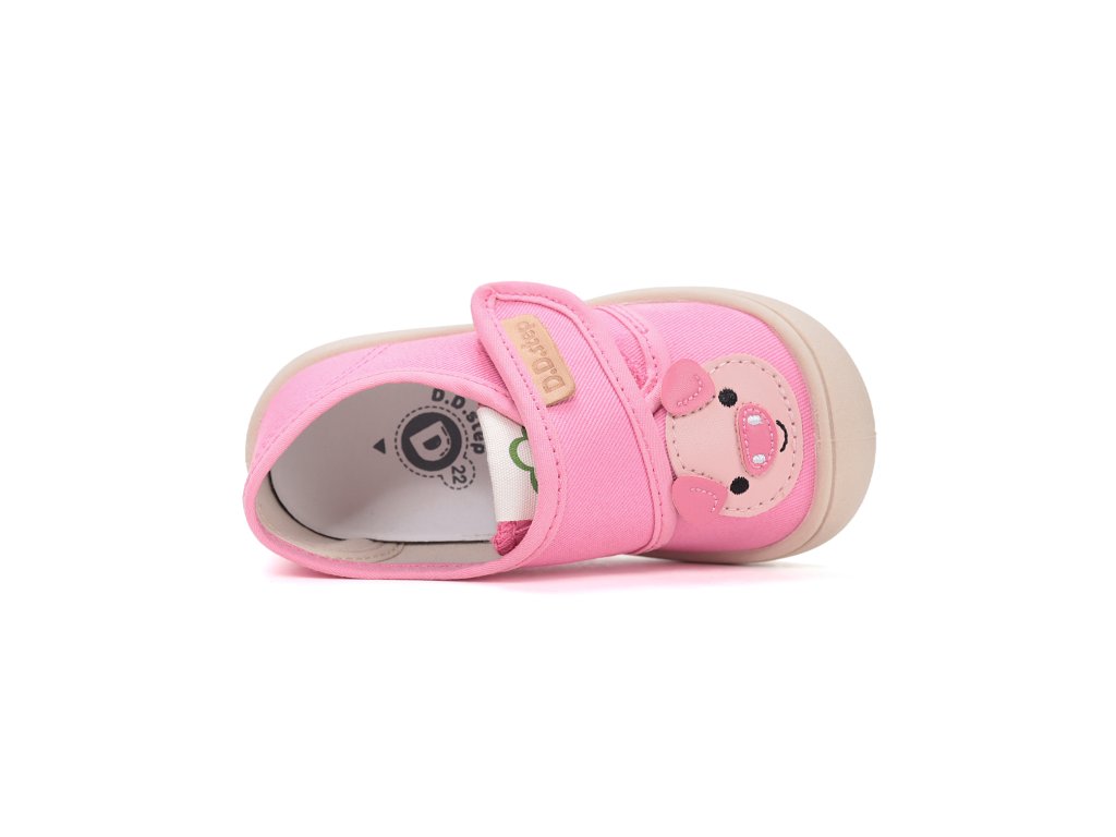 Detské plátené topánky od D.D.Step prednostne určené do interiéru. Mäkká-flexibilná podrážka pre pohodlnú chôdzu a praktické zapínanie na suchý zips. Zvršok a aj stielka je z prírodných textilných materiálov vďaka čomu sú vzdušné a odvádzajú pot od detských nožičiek. Obuv D.D.Step je odľahčená, ohybná a pri prstoch širšia. Plátenky sú pratelné na 30C.