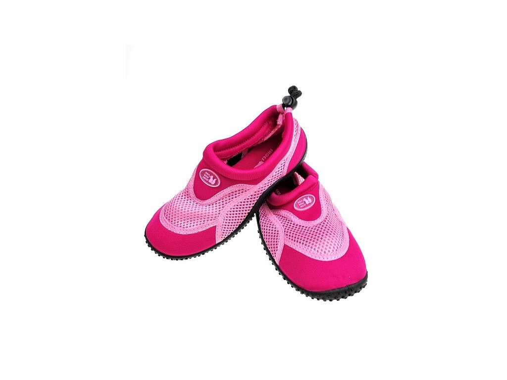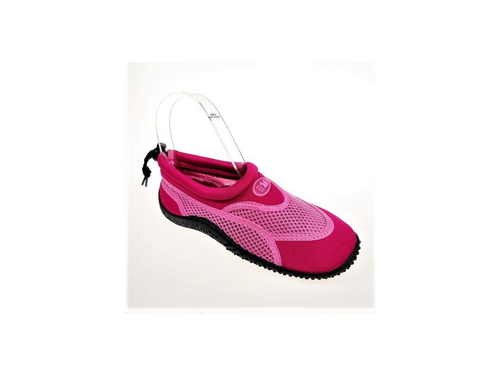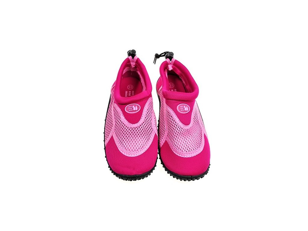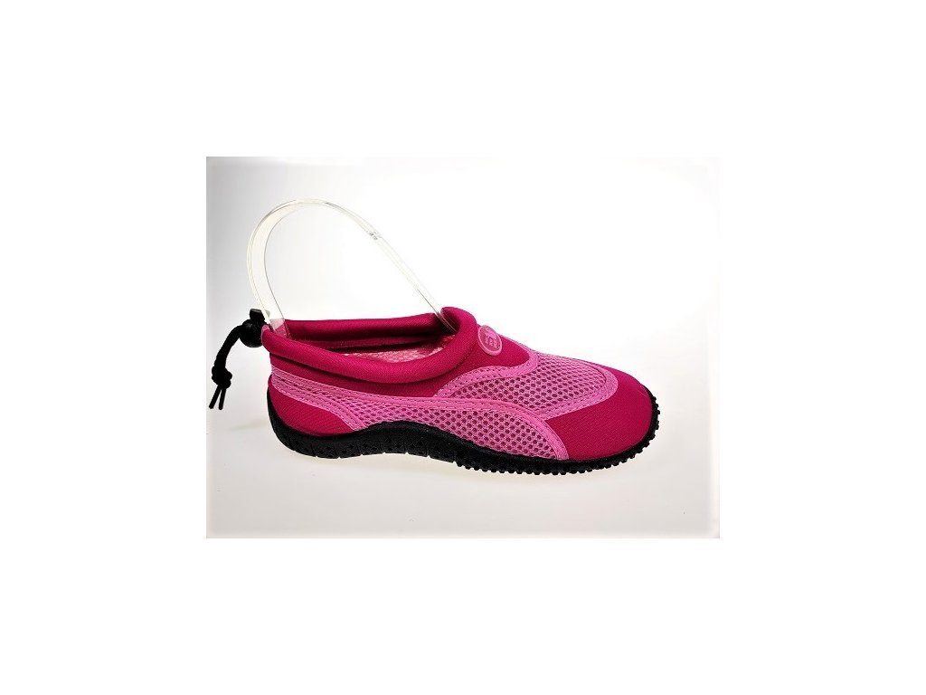 Obuv do vody, na kúpalisko s odolnou podrážkou a zvrškom z elastickej textílie - plavkoviny ktorá sa prispôsobí nohe a rýchlo uschne. Otvor na nohy je širší pre ľachké obutie a so šnúrkou okolo priehlavku sa dá dotiahnúť aby držalo na nohe aj pri plávaní. Vhodné aj na vodné športy.