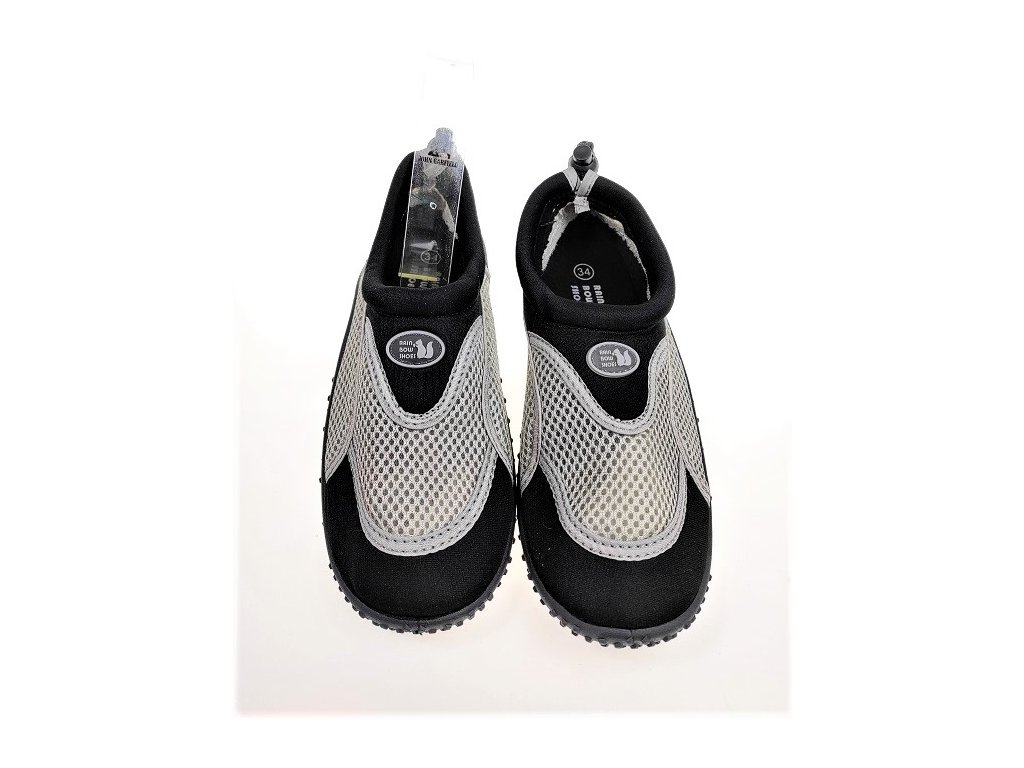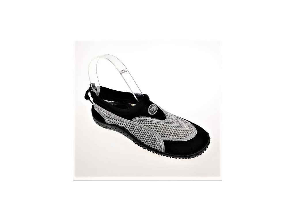 Obuv do vody, na kúpalisko s odolnou podrážkou a zvrškom z elastickej textílie - plavkoviny ktorá sa prispôsobí nohe a rýchlo uschne. Otvor na nohy je širší pre ľachké obutie a so šnúrkou okolo priehlavku sa dá dotiahnúť aby držalo na nohe aj pri plávaní. Vhodné aj na vodné športy.