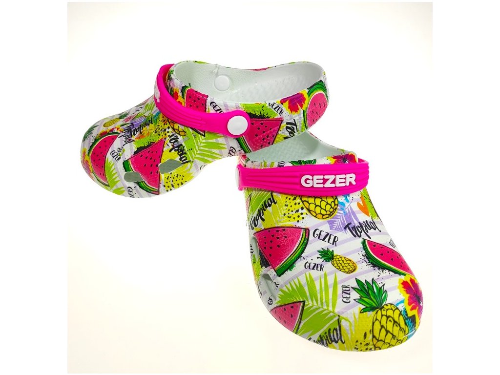 Obuv k vode, na kúpalisko, k bazénu alebo na doma. Obuv je v predu pri prstoch širšia aby bolo dostatok priestoru pre prsty. Nie je vhodné na celodenné nosenie!!