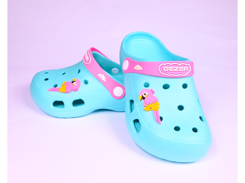 Obuv k vode, na kúpalisko, k bazénu alebo na doma. Obuv je vpredu pri prstoch širšia aby bolo dostatok priestoru pre prsty. Nie je vhodné na celodenné nosenie!!