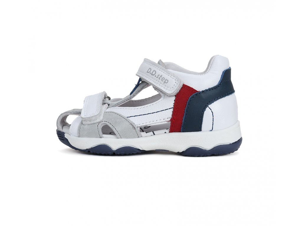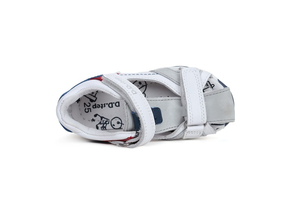 Detská kožená obuv D.D.Step s mäkkou-flexibilnou podrážkou pre pohodlnú chôdzu a praktické zapínanie na suchý zips. Suchý zips na priehlavku je funkčný, na dotiahnutie pre správne držanie. Obuv D.D.Step je odľahčená, ohybná a pri prstoch širšia.