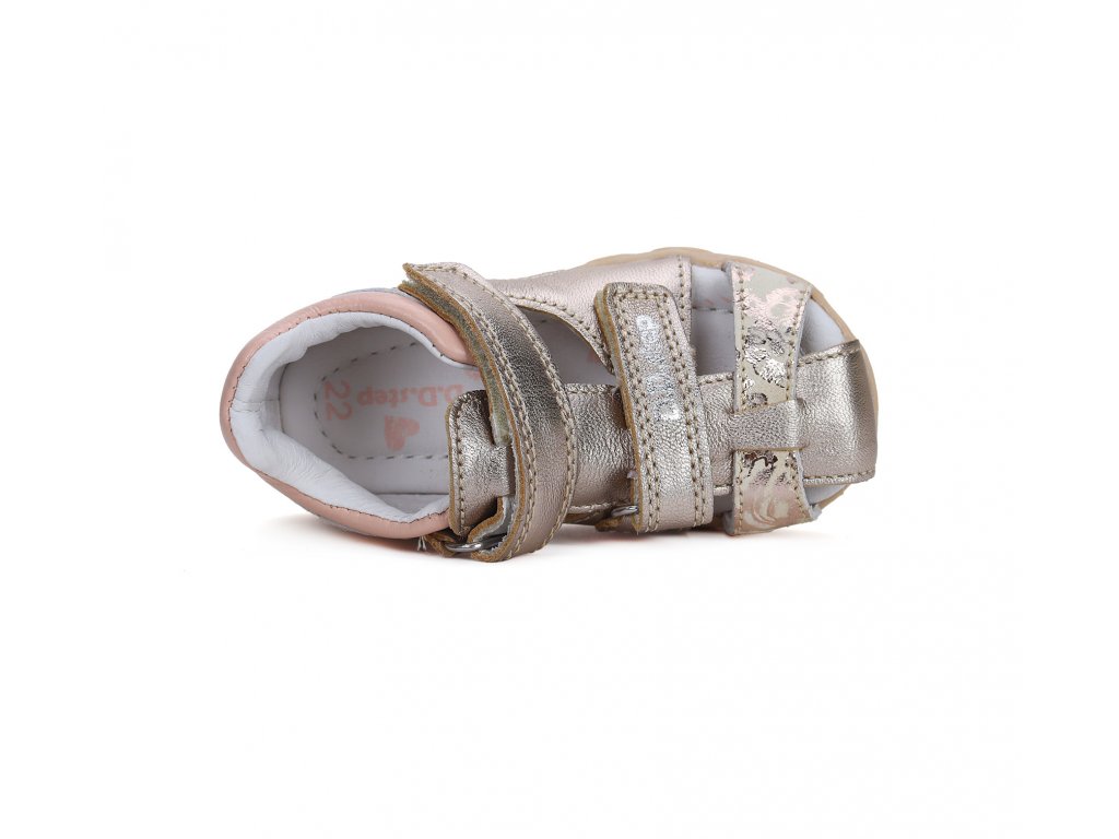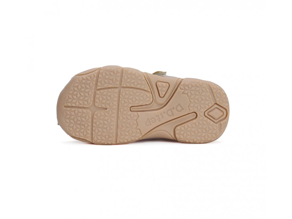 Detská kožená obuv D.D.Step s mäkkou-flexibilnou podrážkou pre pohodlnú chôdzu a praktické zapínanie na suchý zips. Suchý zips na priehlavku je funkčný, na dotiahnutie pre správne držanie. Obuv D.D.Step je odľahčená, ohybná a pri prstoch širšia.