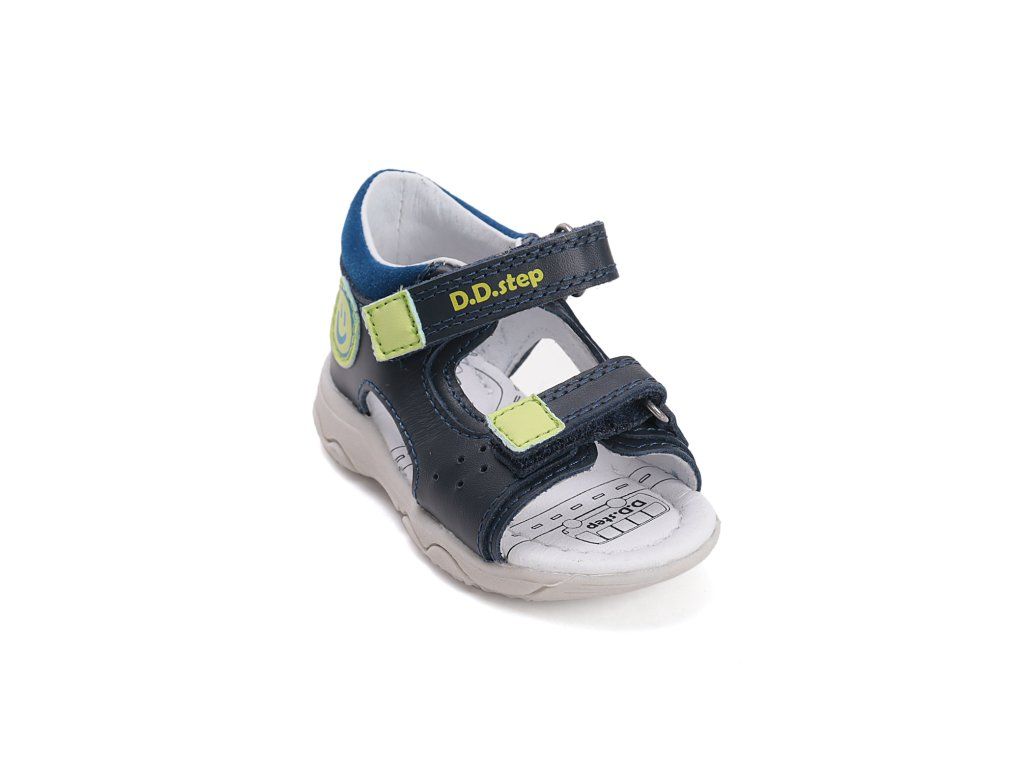 Detské kožené sandálky od D.D.Step, mäkká-flexibilná podrážka pre pohodlnú chôdzu a praktické zapínanie na suchý zips okolo členku ale aj na priehlavku na prispôsobenie aj na tenšie nožičky !! Obuv je na päte pevná pre správne držanie nohy.