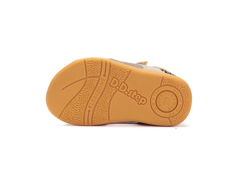 Detská kožená obuv D.D.Step s mäkkou-flexibilnou podrážkou pre pohodlnú chôdzu a praktické zapínanie na suchý zips. Obuv D.D.Step je odľahčená, ohybná a pri prstoch širšia.