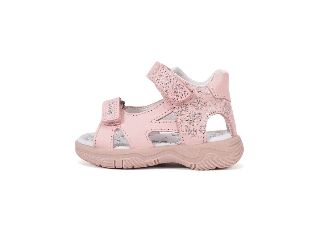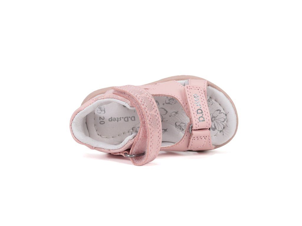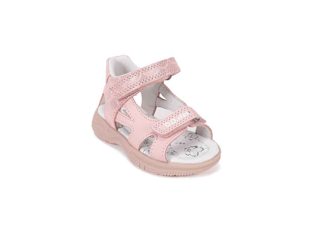Detská kožená obuv D.D.Step s mäkkou-flexibilnou podrážkou pre pohodlnú chôdzu a praktické zapínanie na suchý zips. Päta je pevná pre správne držanie nožičiek. Obuv D.D.Step je odľahčená, ohybná a pri prstoch širšia.