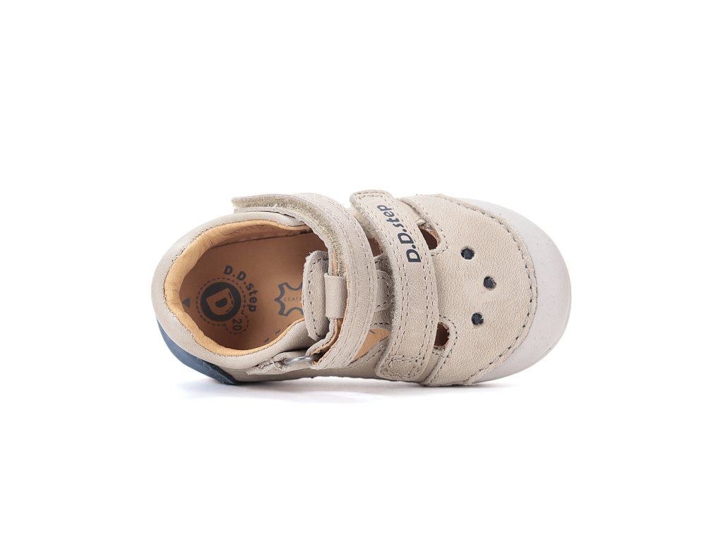Detská kožená obuv D.D.Step s mäkkou-flexibilnou podrážkou pre pohodlnú chôdzu a praktické zapínanie na suchý zips. Obuv D.D.Step je odľahčená, ohybná a pri prstoch širšia.