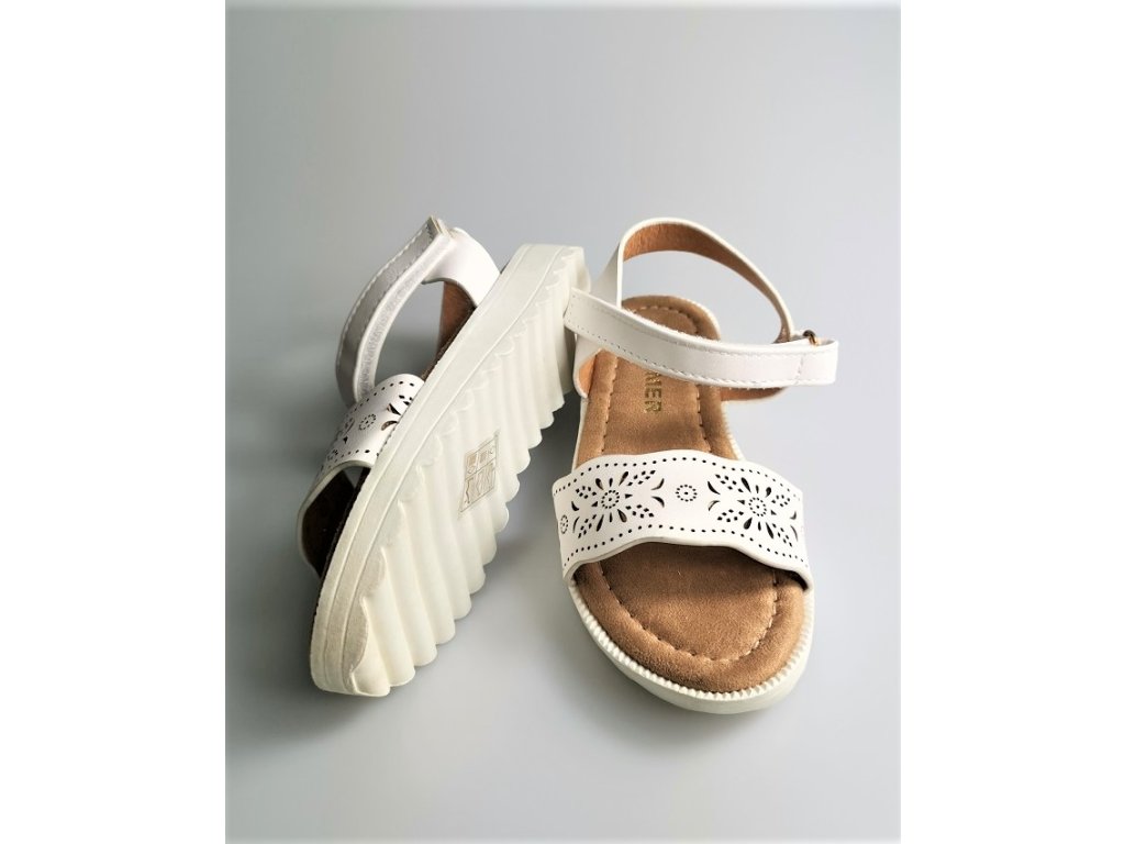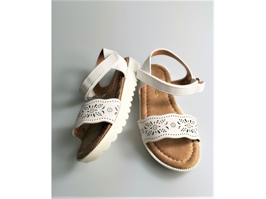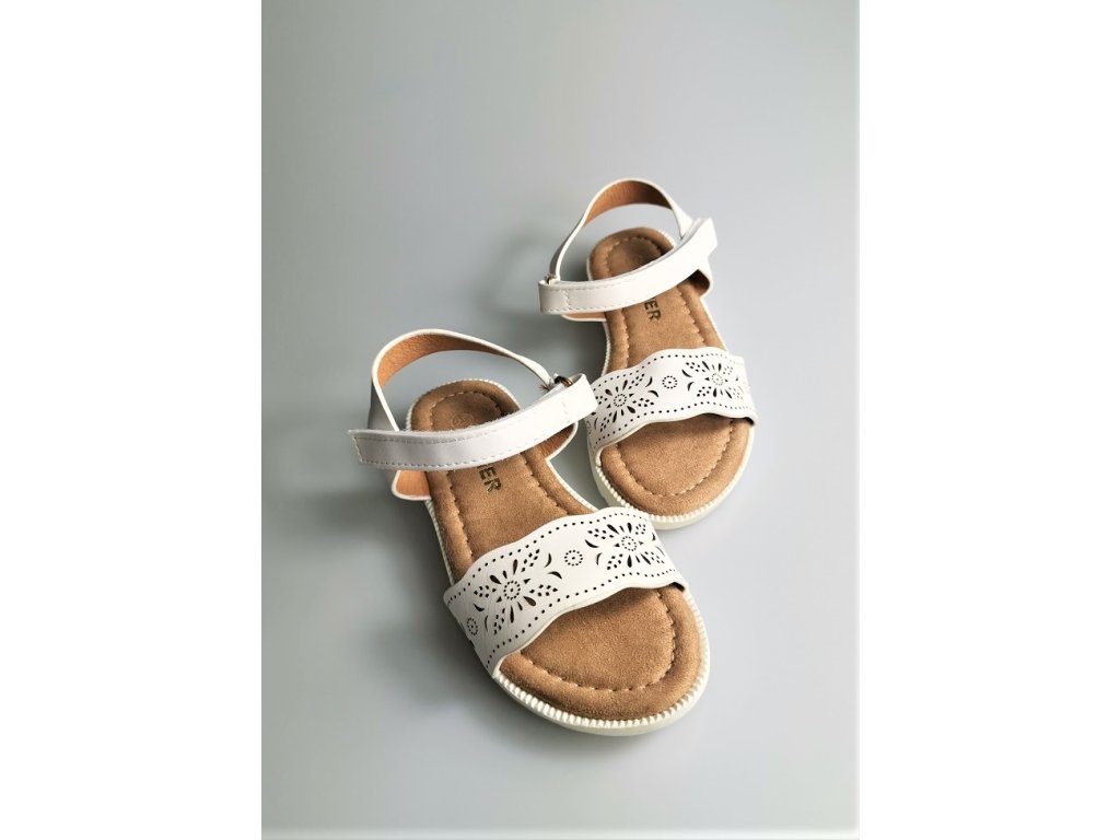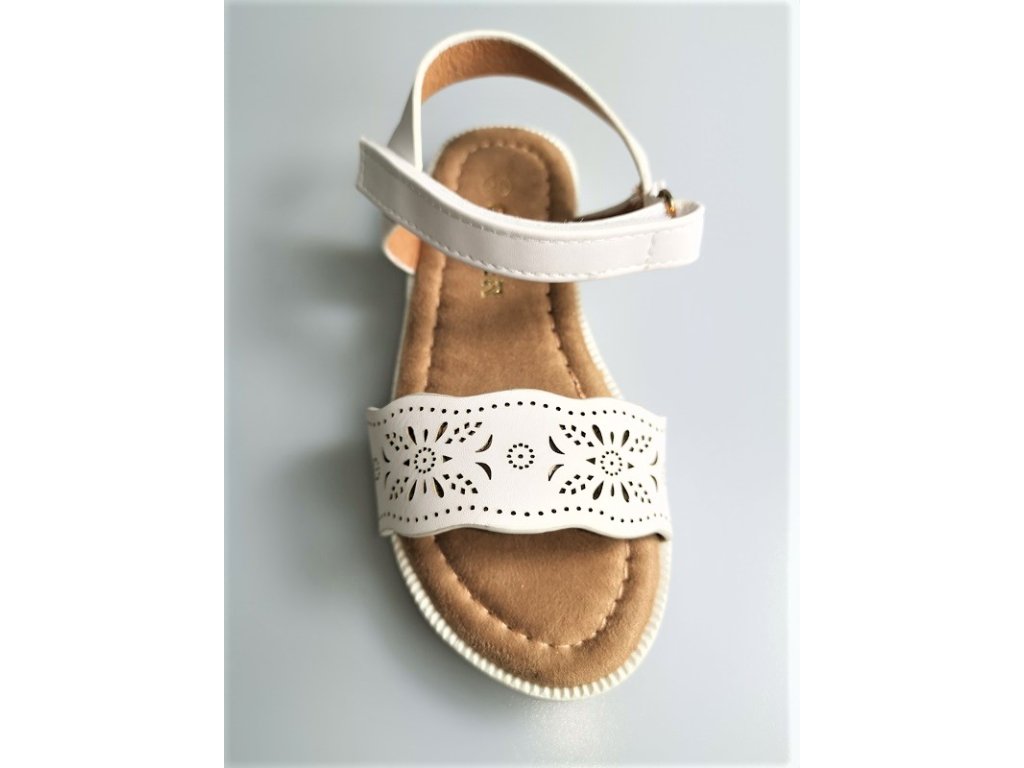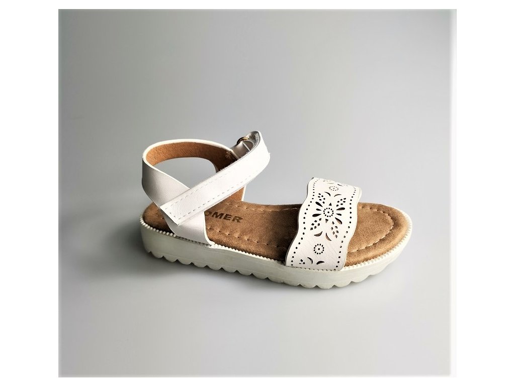 Detské sandálky s pekným ornamentom na priehlavku z mäkkého materiálu. Stielka je z protišmyklavej textílie absorbujúca pot . Podrážka je z mäkčeného materiálu pre pohodlnú chôdzu. Zapínanie na členku je na praktický suchý zips.