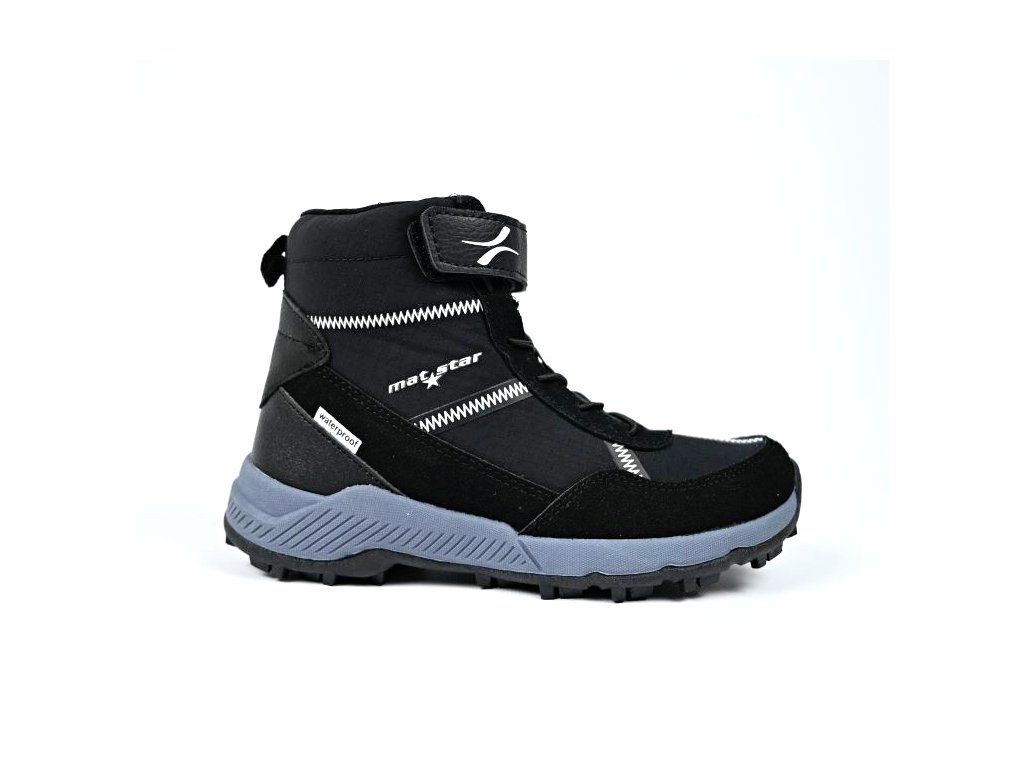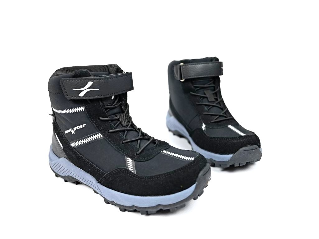 Pohodlné detské topánky na športovej protišmykovej podrážke jemne zateľplené. Zapínanie na suchý zips. Povrch je z vodo odpudivého materiálu s TEXovou membránou. Vďaka gumičkám na priehlavku sú pružné a ľahšie obúvateľné.