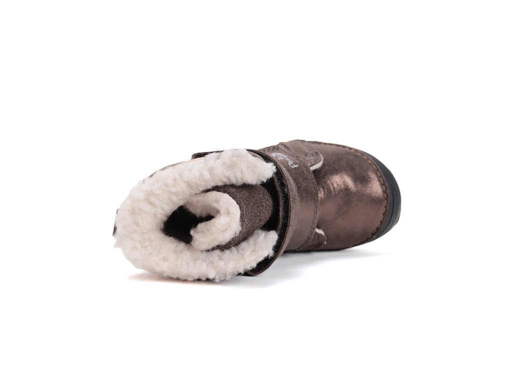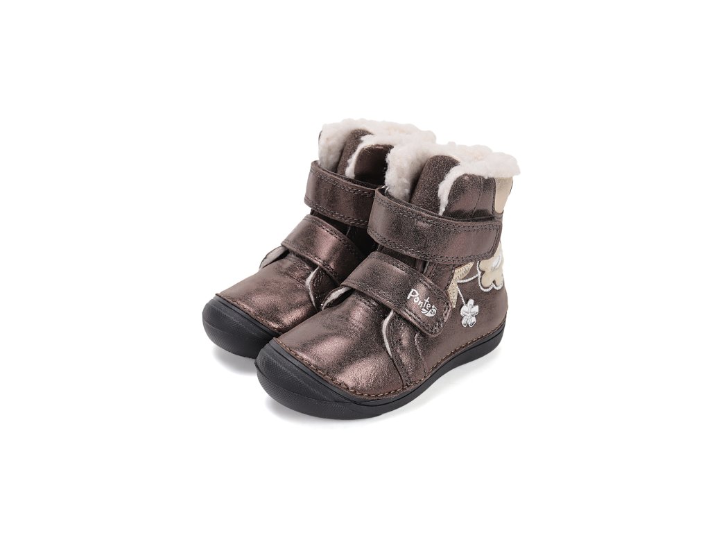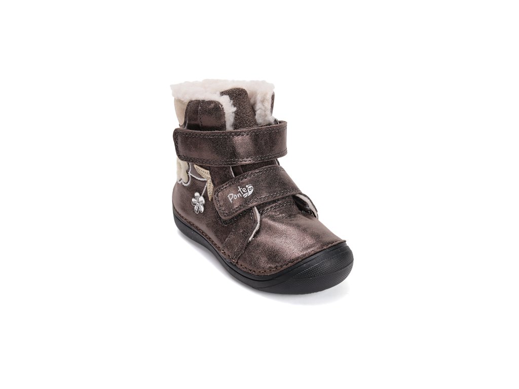 Detská zimná, kožená obuv zateplená s teplou kožušinkou. Mäkká-flexibilná podrážka pre pohodlnú chôdzu, dostatočne široká pri prstoch. Obuv je celokožená z odolnej lícovej kože s vodo odpudivým povrchom. Podrážka je lepená a aj šitá najmodernejšou 3D technológiou. Obuv D.D.Step - Ponte20 je odľahčená.