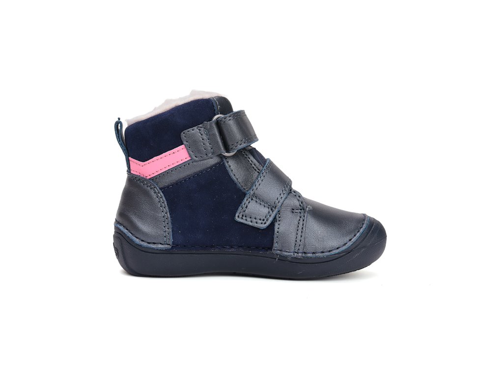 Detská zimná, kožená obuv zateplená s teplou kožušinkou. Mäkká-flexibilná podrážka pre pohodlnú chôdzu, dostatočne široká pri prstoch. Obuv je celokožená z odolnej lícovej kože s vodo odpudivým povrchom. Podrážka je lepená a aj šitá najmodernejšou 3D technológiou. Obuv D.D.Step - Ponte20 je odľahčená.